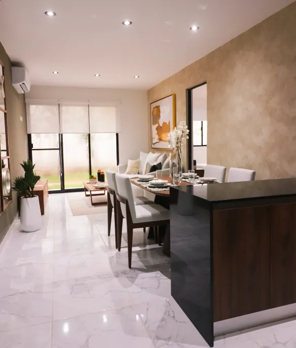 Moderno y funcional, ofrece elegancia y confort con dos recámaras, dos baños, cocina equipada con barra de granito, amplia sala-comedor, terraza y espacio de estacionamiento.